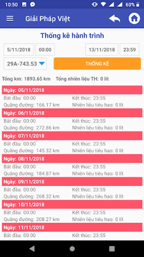 4. Review the car journey according to time interval