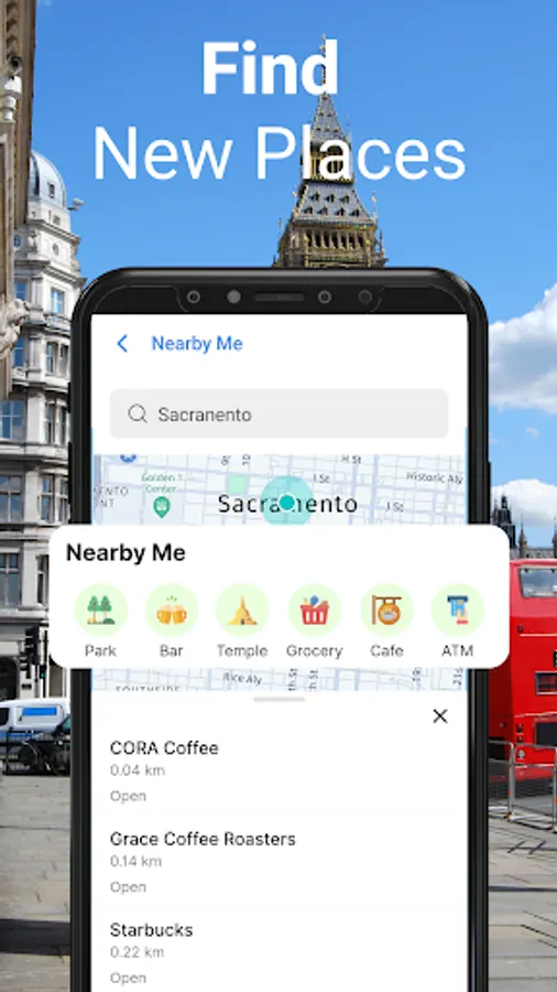Discover new places in your vicinity or in the new place you travel using the feature on the GPS app. Click on this feature and the app will list out everything around that you can explore- from tourist places to the best eateries, the app’s got it all searched for you! No wonder it is one of the best directions app today!