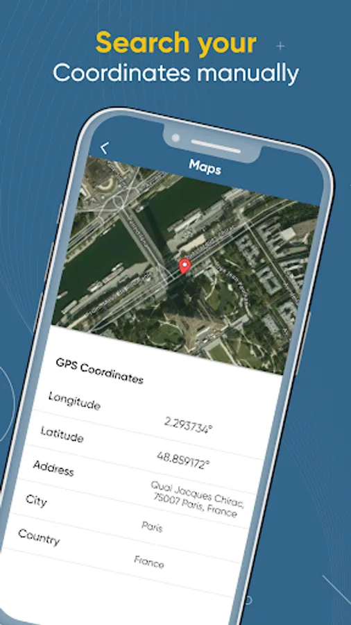 6. The map data feature of GPS map live camera / geo camera tag authorizes the user to add map data to the image. Using this feature, one can determine longitude, latitude, address, city, and country.