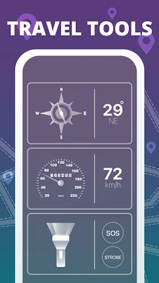 With the help of GPS Maps and Travel Tools app you can finally have all your travel tools in one app. Plan your commute and travel hassle free with this easy to use Maps and Travel tools app.