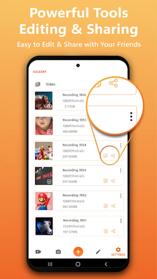 ● Export Full HD video with custom settings: 240p to 1080p, 60FPS, 12Mbps