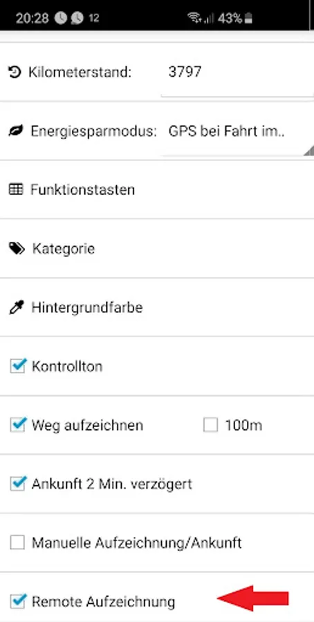 With the apps 'GPS Departure and 'GPS Arrival' you can remotely start and stop the trip recording. You can activate this function in the Pro-Version for a one-off € 1,-.