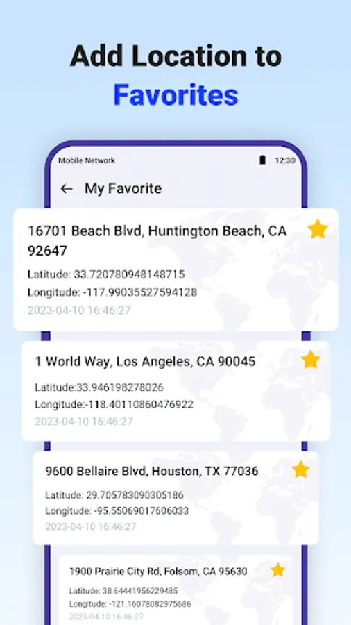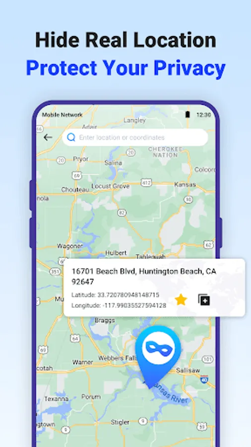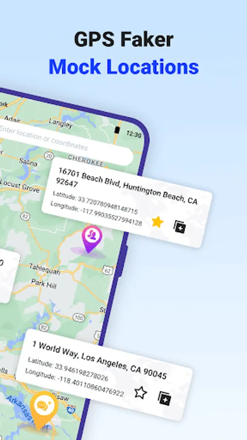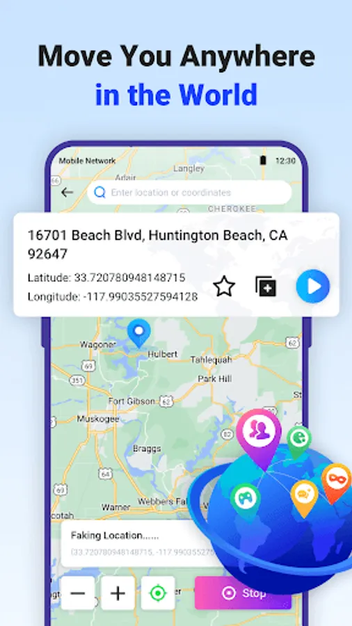 GPS Faker can simulate the location on your phone to anywhere in the world.Just enter your desired location or click on the location on the map, then tap the start button to start the fake GPS, the phone location will be changed and your latitude and longitude will start changing. At the same time your real coordinates will be hidden to better protect your privacy.