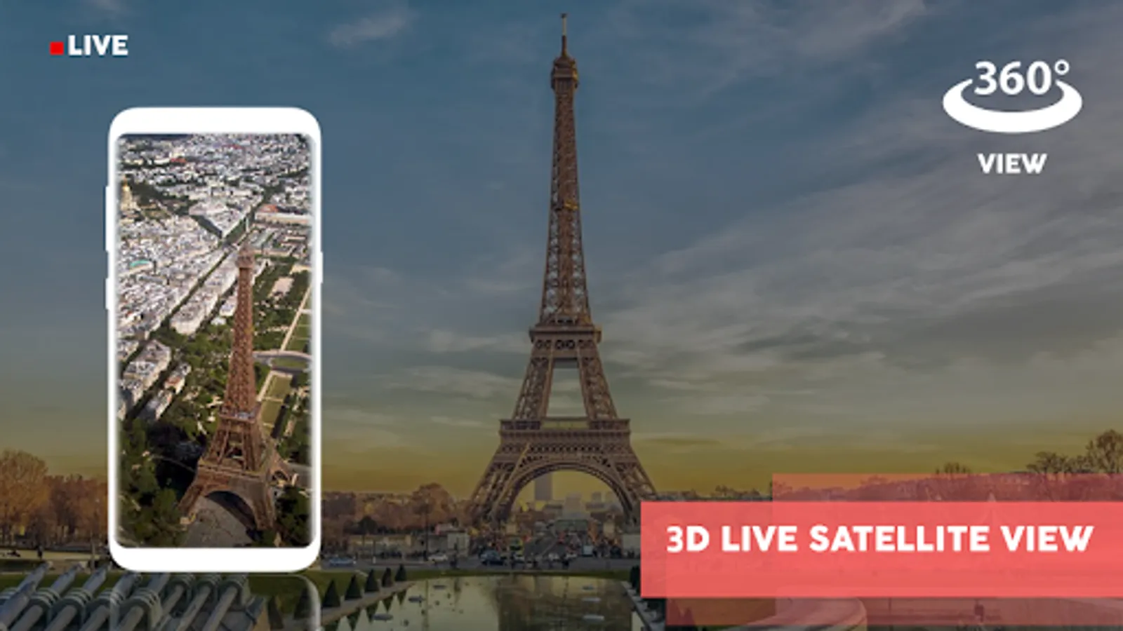 Discover the Live Earth map (2D/3D View) with live satellite view & 3D terrain of the entire globe & 3D buildings in multiple cities around the world. Enjoy 3D World Maps, Satellite View with Live earth map HD and satellite view live is at your door step. Live satellite map is a range of whole earth view live maps, street view 360 panorama streaming and live satellite real-time tour without facing the pain of flights. Earth map real-time is good app for live world exploration that gives HD Street views of famous locations, 3D global maps and enjoys earth view real-time. When there is a time of discovering the world, Earth live spots broadcasting makes the tour genuine in a sense to current living earth view, 360 view and current time satellite pictures. Just install Globe 3D & Planet Earth Live and start exploring the beauty of planet with 3D World Satellite Navigation & live maps satellite view.