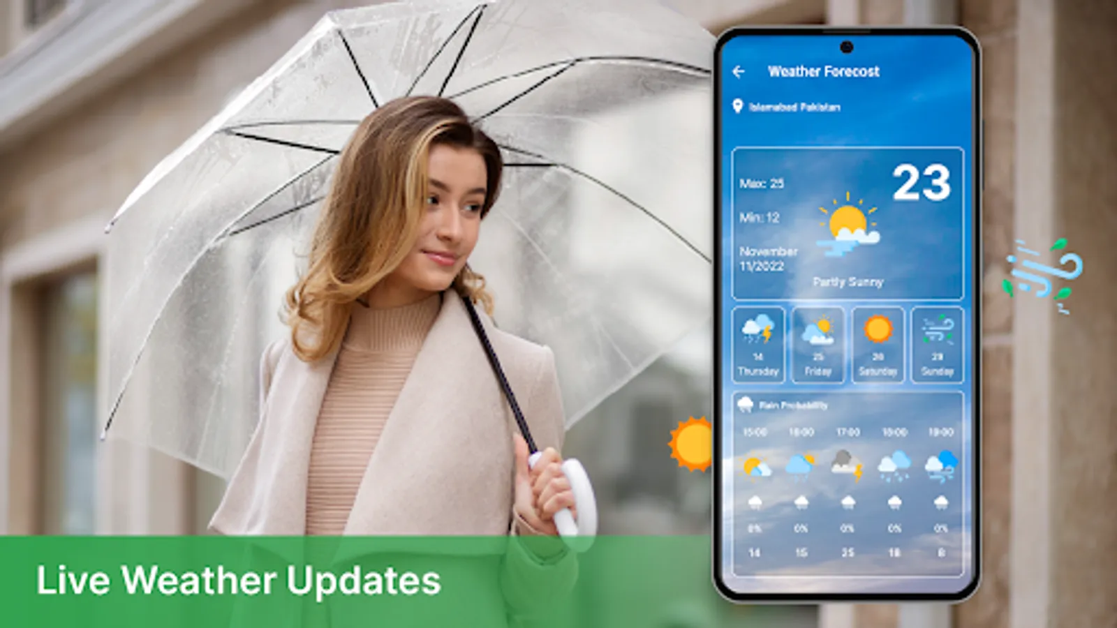 Get weather alert of every day like raing, cloudy wind etc this will keep you updated about weather prediction