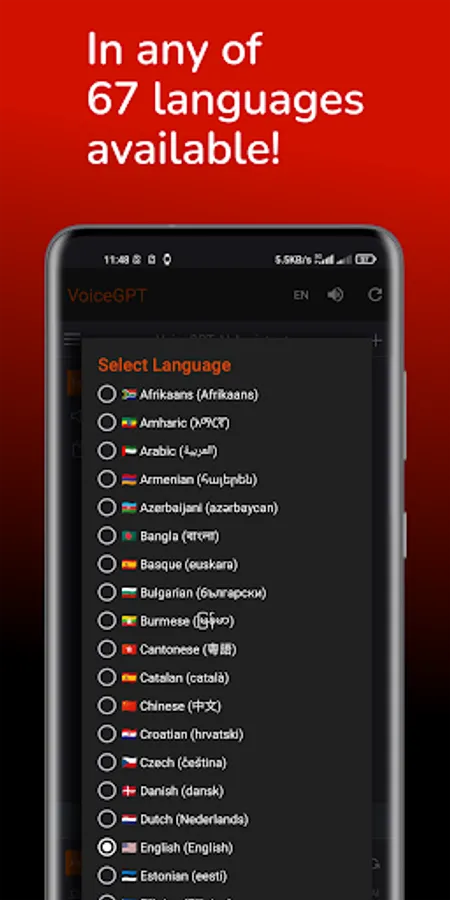 π 67 Languages Supported: VoiceGPT supports 67 languages for both input and output.