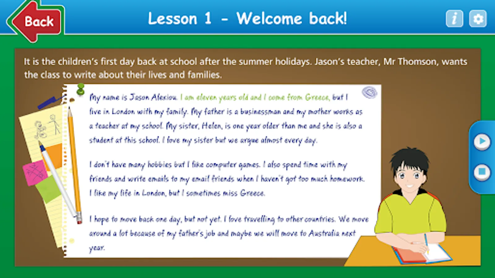 This is a B'Senior level English learning series. The material is presented in a simple, understandable way and is pleasantly covered through interesting texts. The series consists of two main books and is accompanied by the i-book. The i-book is a software that contains the pronunciation and translation of the vocabulary in an interactive format, the audios of the story and additional vocabulary and grammar exercises. The exercises are different from those in the book - in the form of video games and are automatically corrected with an automatic evaluation system. Now you can download the i-book app, to learn English easily and pleasantly through your tablet or smartphone.