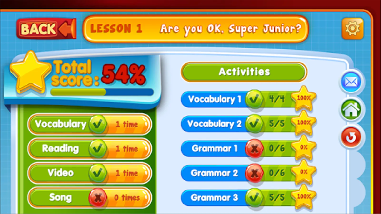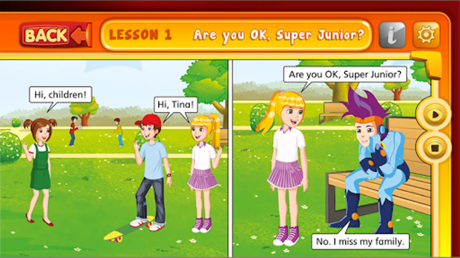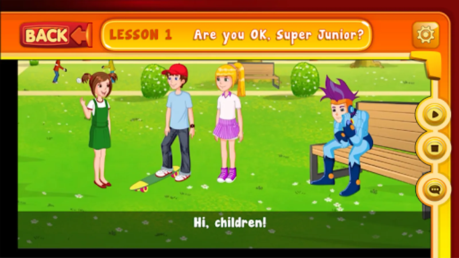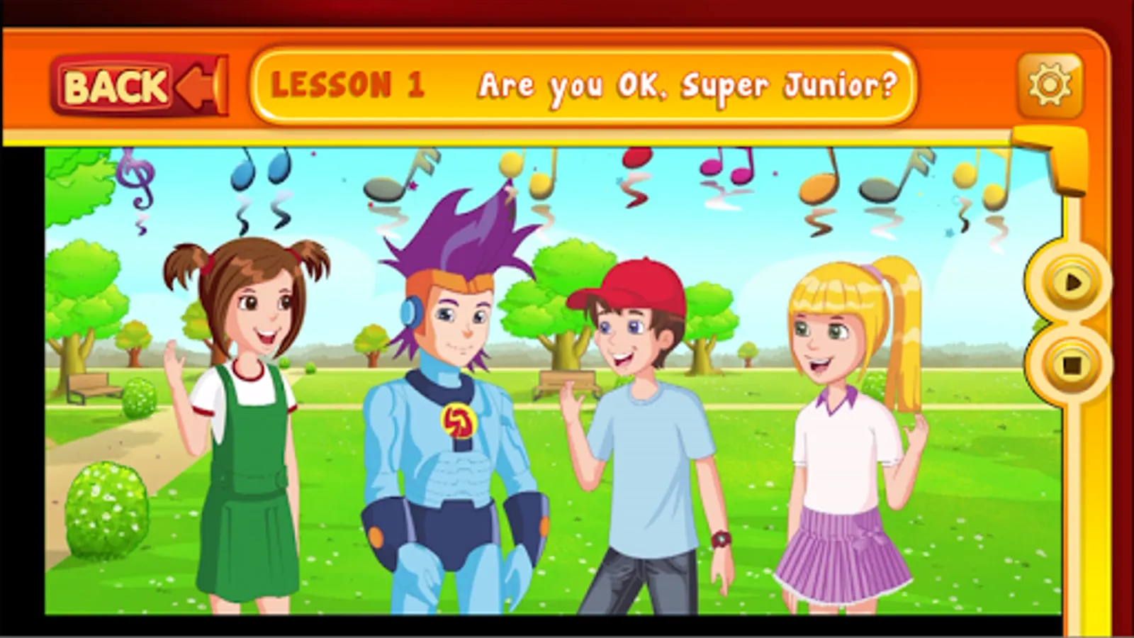 Super Junior A is a pioneering English learning course specifically designed for 3rd or 2nd grade students. The series consists of two books and is accompanied by the i-book. The i-book is a software containing the pronunciation and translation of the vocabulary in an interactive form, the 40 episodes of the story in the form of cartoons, the audios of the story, the video clips of the songs, additional lexical and grammar exercises - different from those of the book - in the form of video games, as well as an automatic evaluation system. Now you can download the i-book application, to learn English easily and pleasantly from your tablet or smartphone.