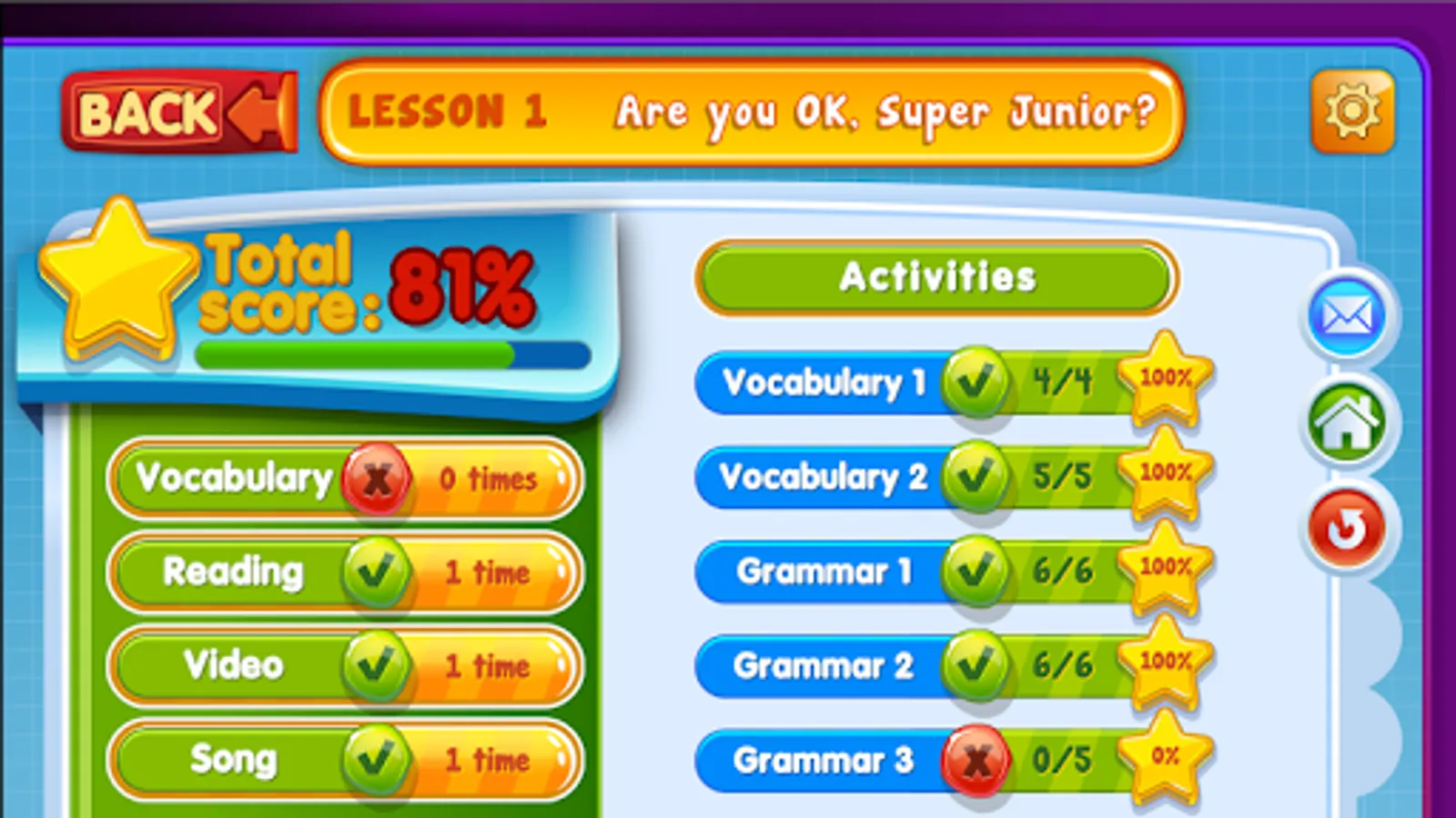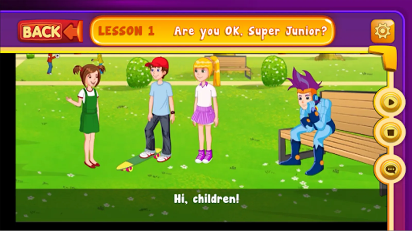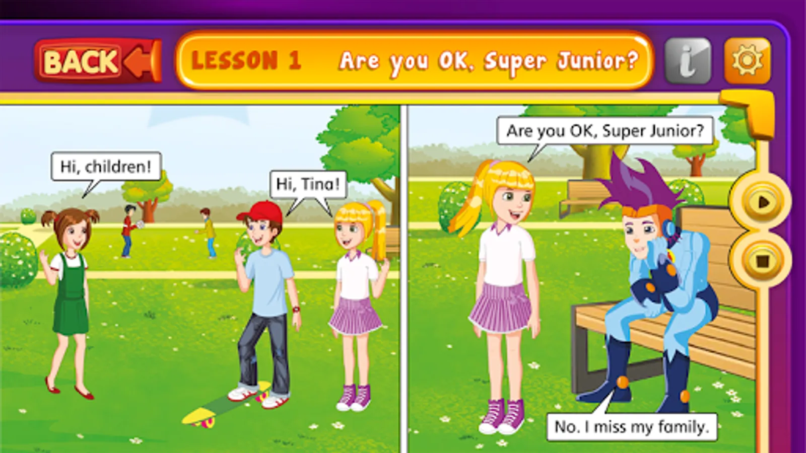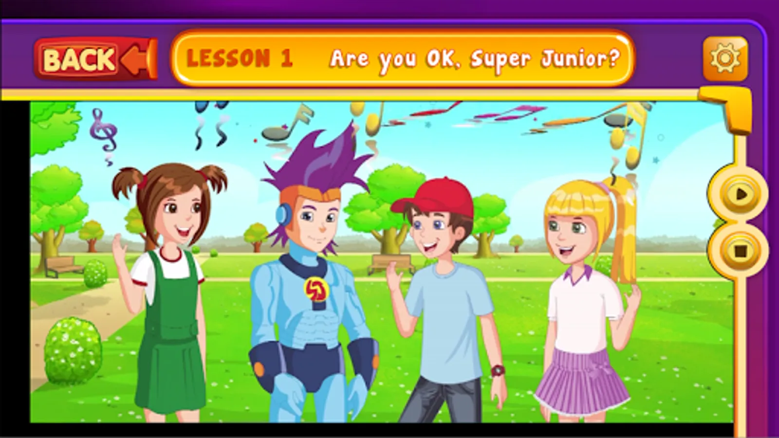 Super Junior A to B is an innovative English learning series specifically designed for 3rd or 2nd grade students. The series consists of two books and is accompanied by the i-book. The i-book is a software containing the pronunciation and translation of the vocabulary in an interactive form, the 40 episodes of the story in the form of cartoons, the audios of the story, the video clips of the songs, additional lexical and grammar exercises - different from those of the book - in the form of video games, as well as an automatic evaluation system. Now you can download the i-book application, to learn English easily and pleasantly from your tablet or your smartphone.