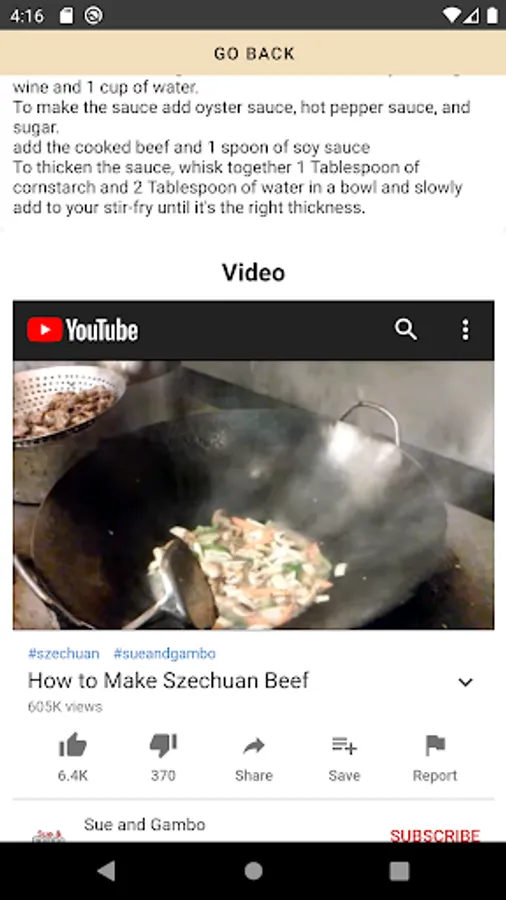 The user can search a recipe, find the ingredients and instructions to cook it. For more help, the user can view a small video with the recipe.