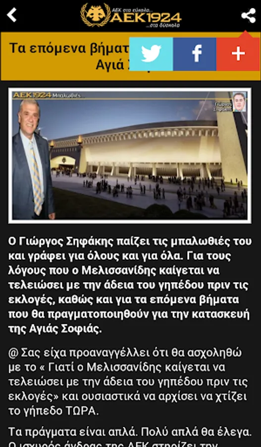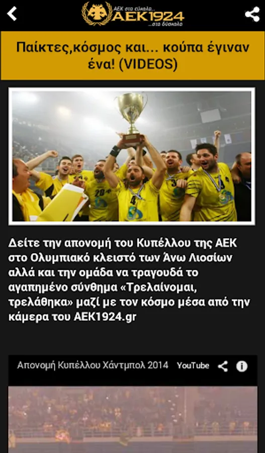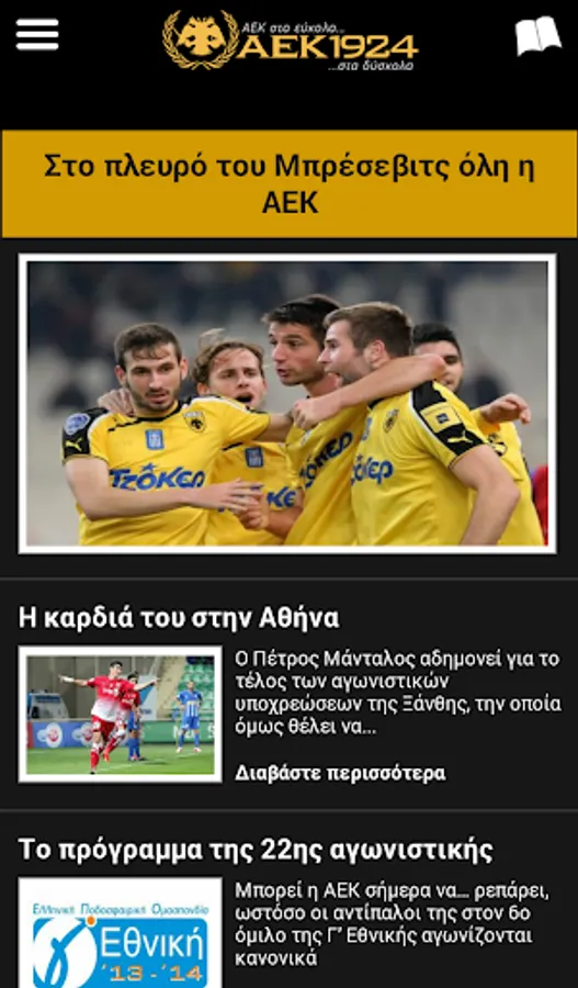 AEK in easily, AEK1924 the difficult. Continuous updating of all the happenings of AEK, blogs and journalism, live broadcasts, live debates ... All new AEK in a Android application label biceps!