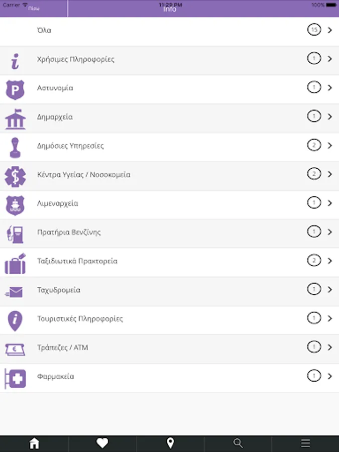• Full coverage of all main service points (eg. Distribution, catering, entertainment) and basic information (eg. Health Centers, Municipality, Police, Tourist Information) of each region