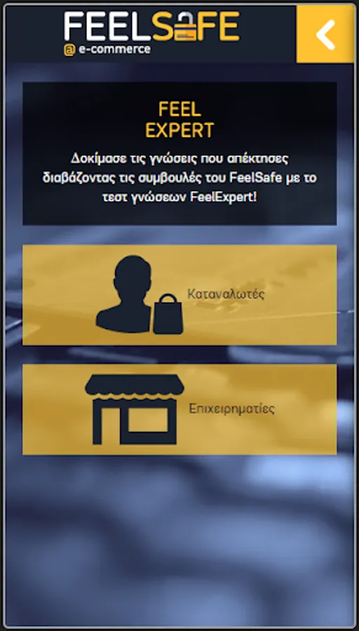 The application incorporates an interactive game - test called «Feel Expert» and contains questions and answers on e-commerce. Users can through this game to see if they know how to surf safely and make electronic purchases, particularly using cards.
