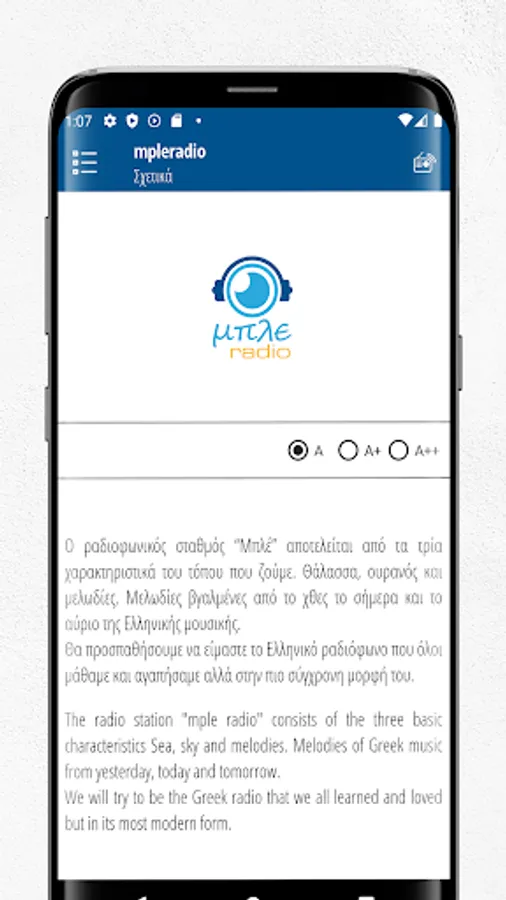 The radio station "mple radio" consists of the three basic characteristics Sea, sky and melodies. Melodies of Greek music from yesterday, today and tomorrow.