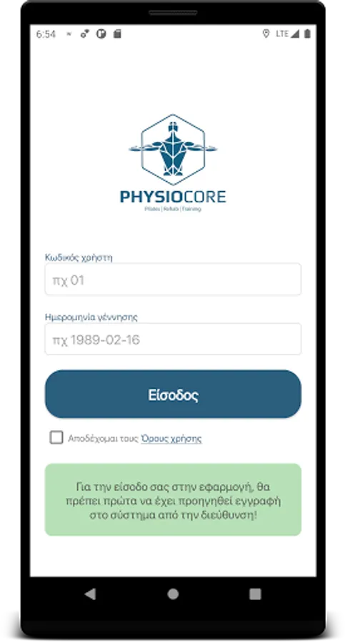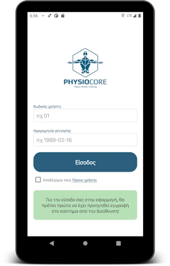 Application for Physiocore customers
