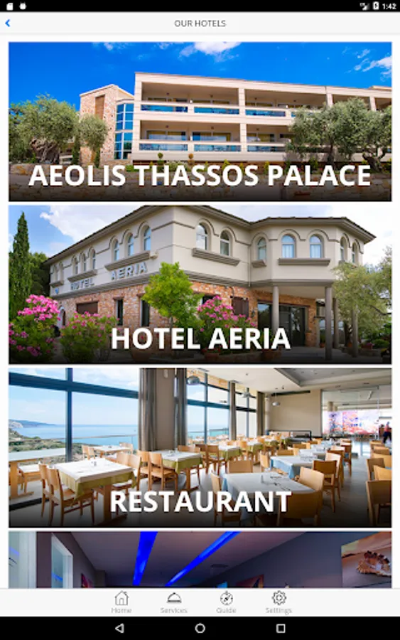 By using our mobile application you are able to get information about our hotel and its surrounding area, discover beautiful beaches & sights and navigate to them using your GPS.  In addition you are able to use the application to contact directly with our reception and be informed about any upcoming local or regional events .
