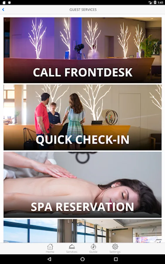 Furthermore logged in hotel guests are able to request various hotel services directly from the application such as room cleaning, spa reservation and more.
