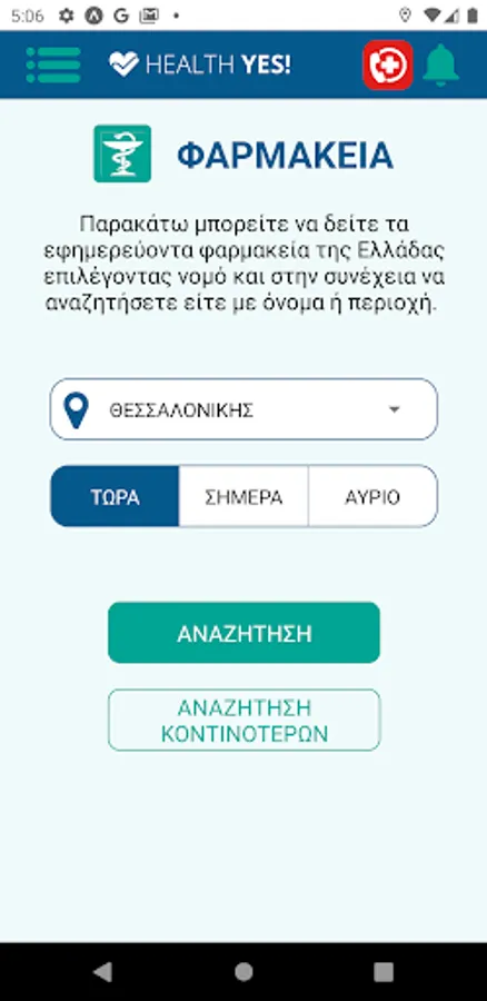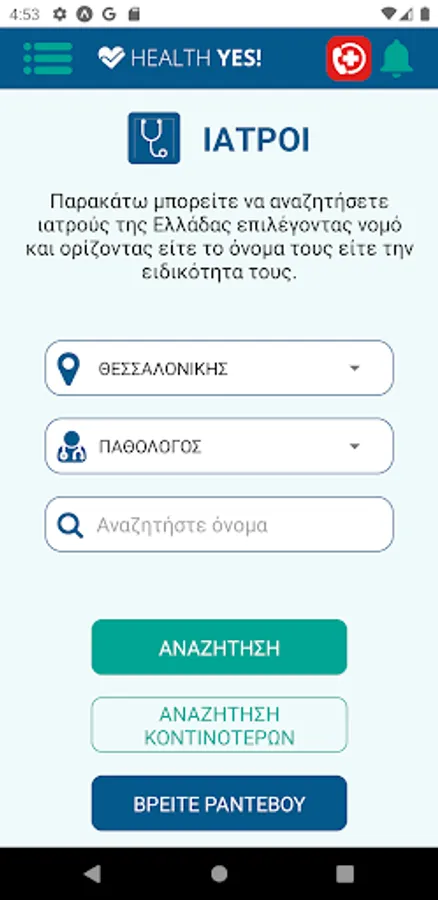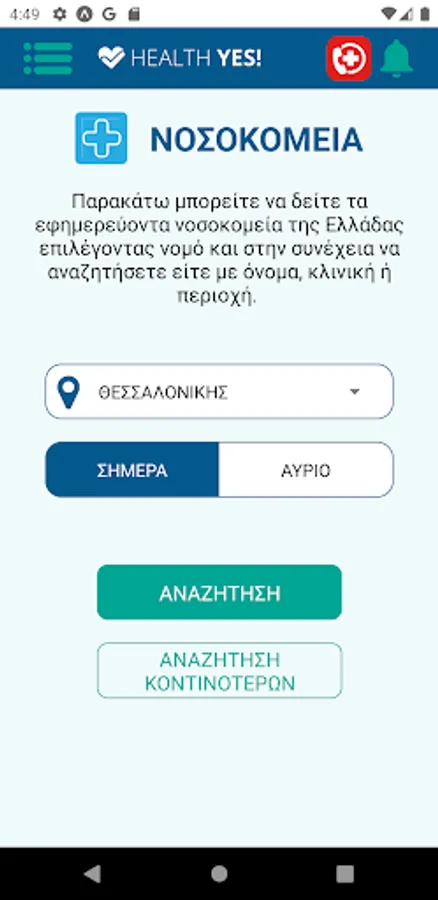 Specifically, the HealthYes! offers online health services to the citizens of Greece. The user of the application can find on-duty hospitals and pharmacies. In addition, it has the ability to search for doctors, as well as to see the availability of EOPYY medical appointments. The application has been specially designed to be visually accessible to older people.