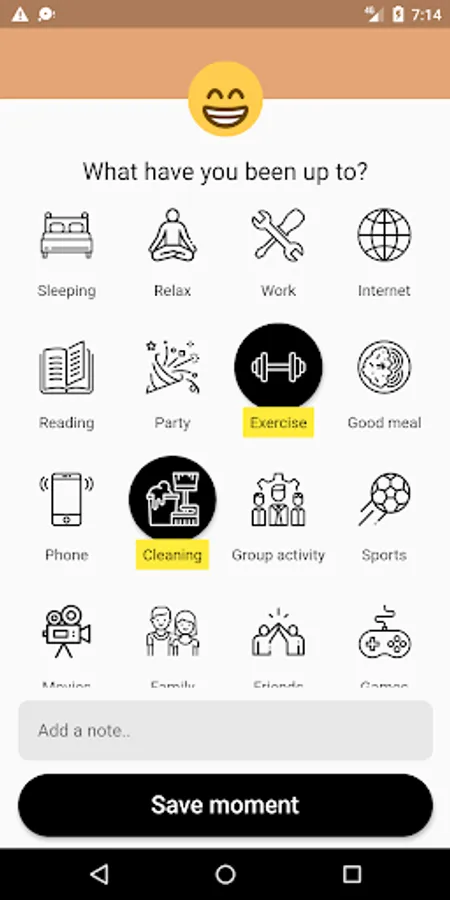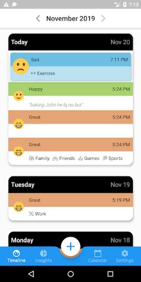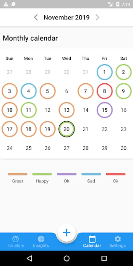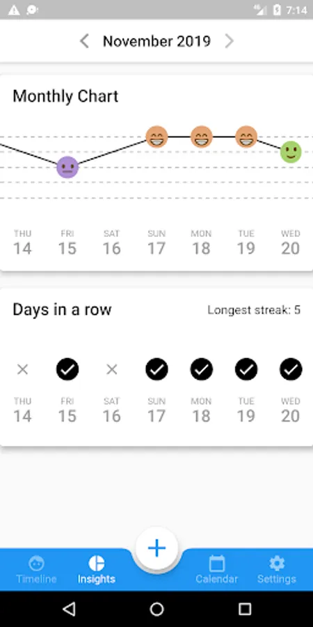 Select your mood and add the activities of your day. You can also add as many notes as you like. Your inputs will start forming patterns that may reveal valuable insights. See which activities help you feel better and make the shift to a happier and more fulfilling life.