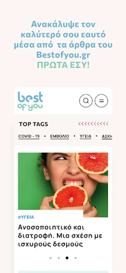 The experienced editorial team of Bestofyou.gr through articles and suggestions, news, research and interviews and with the cooperation of reputable experts give scientific advice and information that aim to make your life better!
