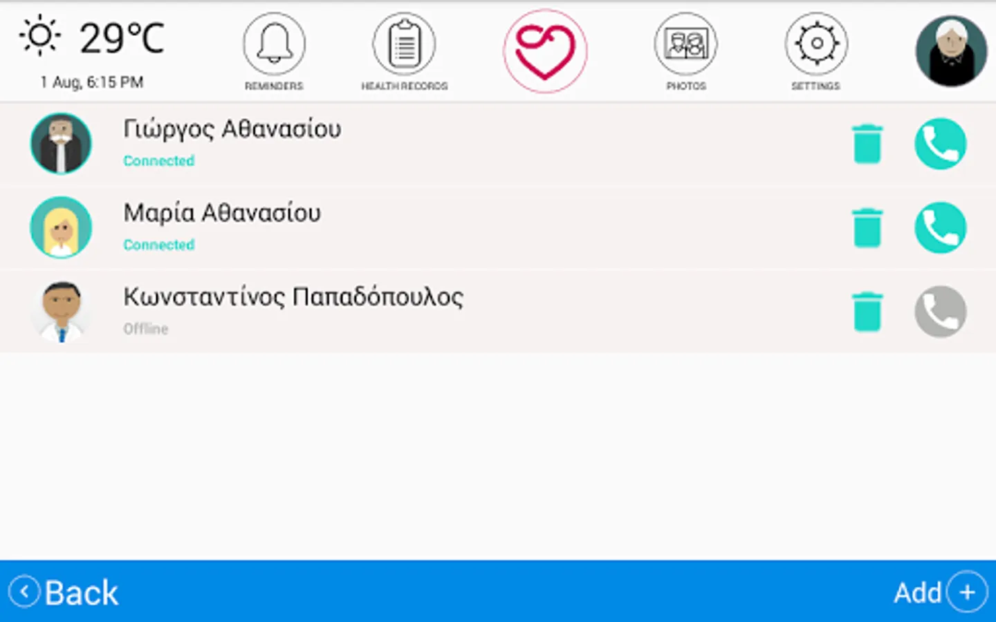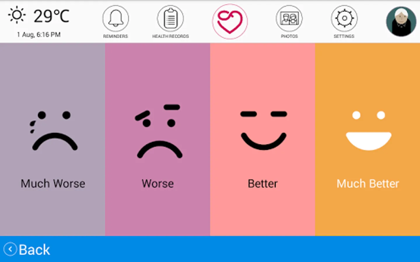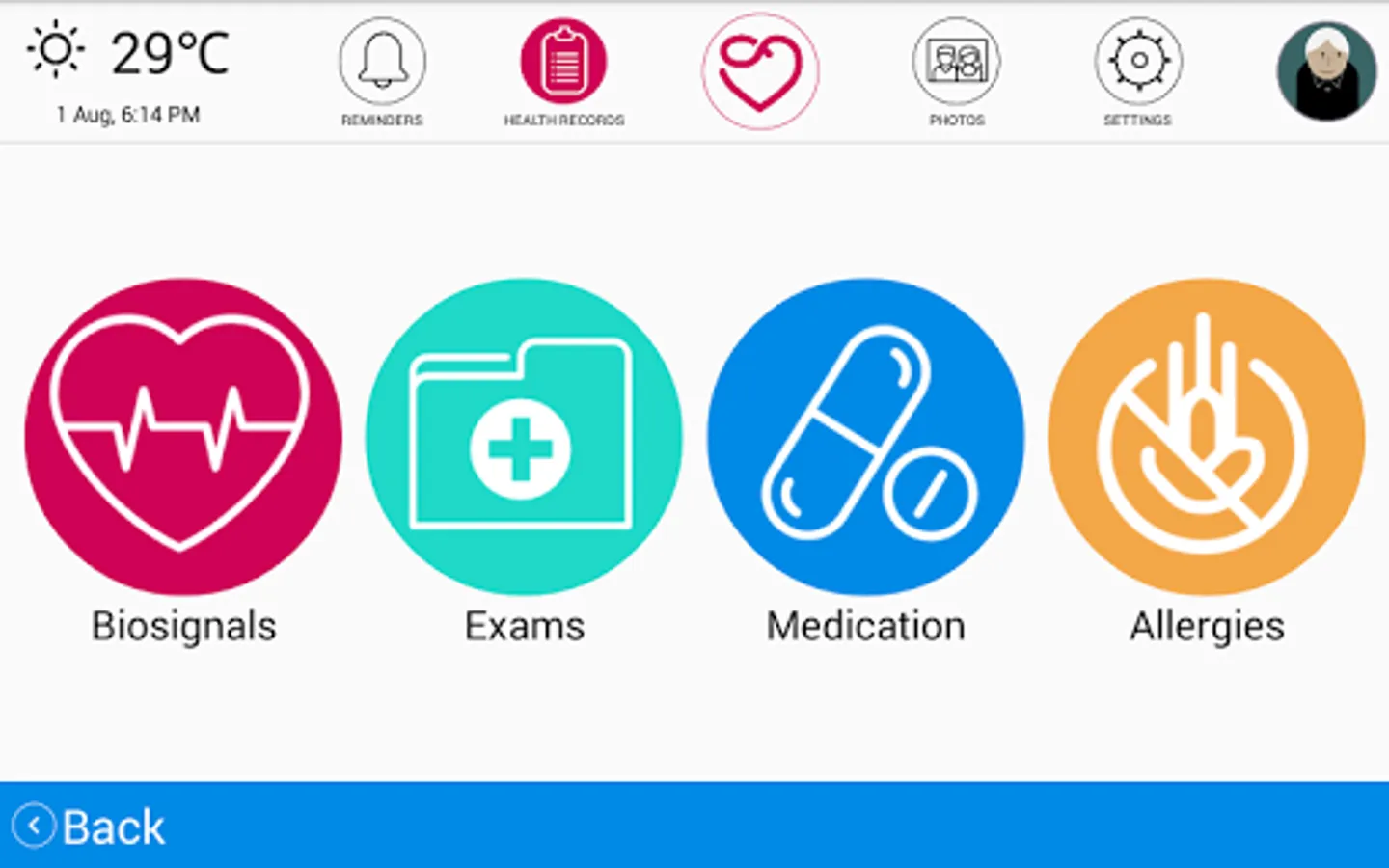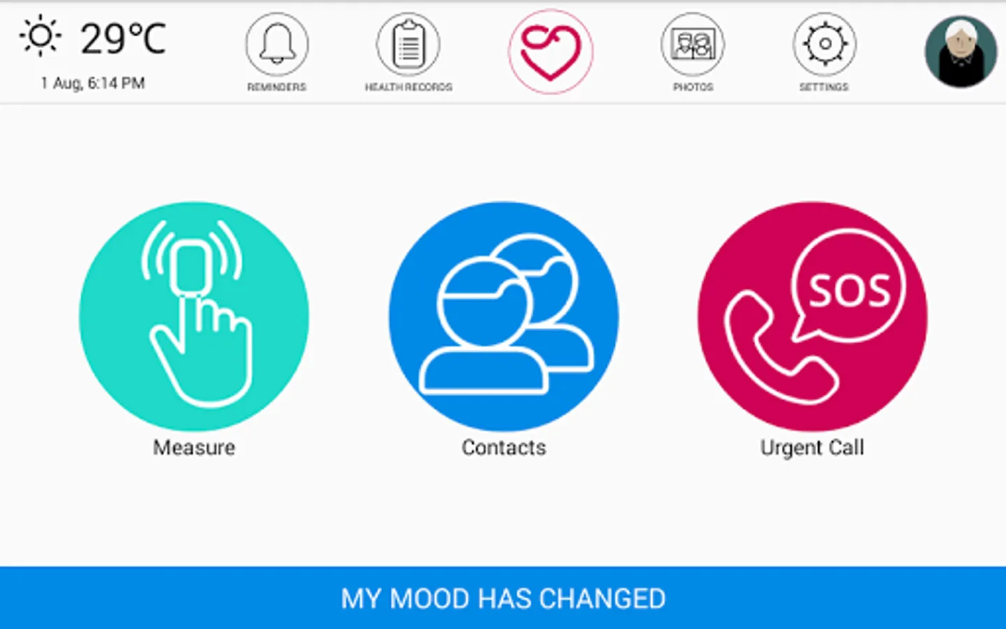 HeartAround extends independent living of seniors by providing constant support and supervision, allowing them to stay at home for longer, while contriburing to their safety. The application helps seniors stay in touch with their loved ones and improves chronic illness management by supporting continuous monitoring of their health status and encouraging compliance to prescribed medications.