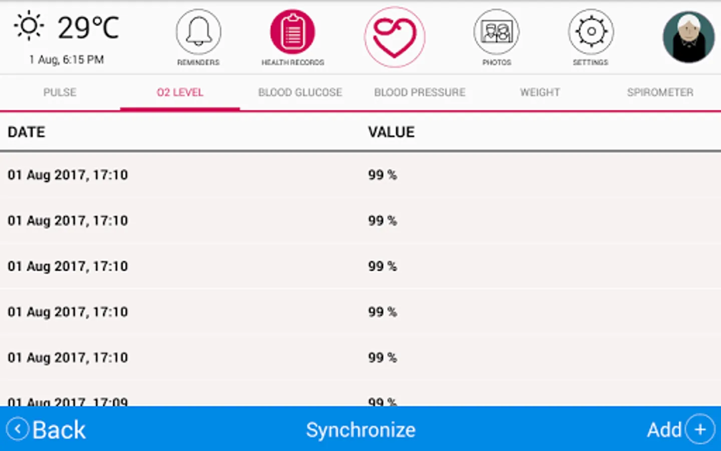 - connection to wireless sensors (external certified hardware) to record measurements of vital signs, such as blood oxygen saturation, blood glucose levels or blood pressure.
