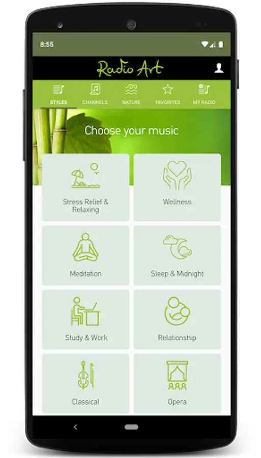 • Many music channels with excellent music carefully selected for anxiety reduction and stress relief.