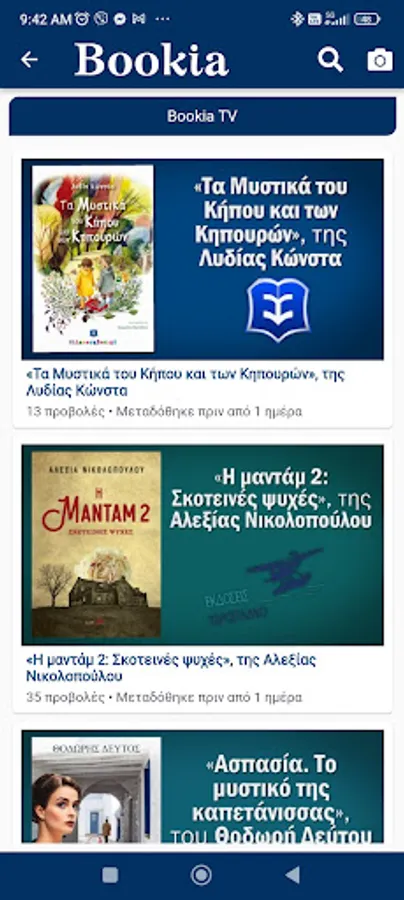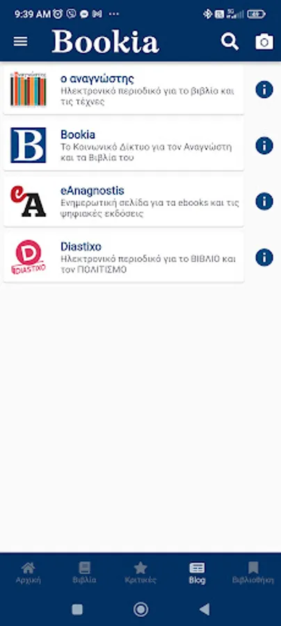 The Bookia App brings the functionality of www.Bookia.gr to the phone and tablet, and in addition, gives access to the main informative Sites and Blogs about the book.