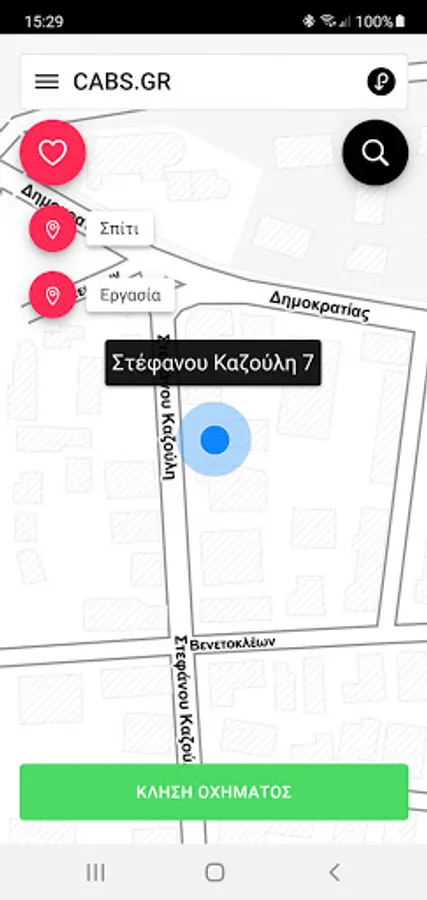 Through a user-friendly process, CABS.GR passenger application, provides the ability to call a taxi.