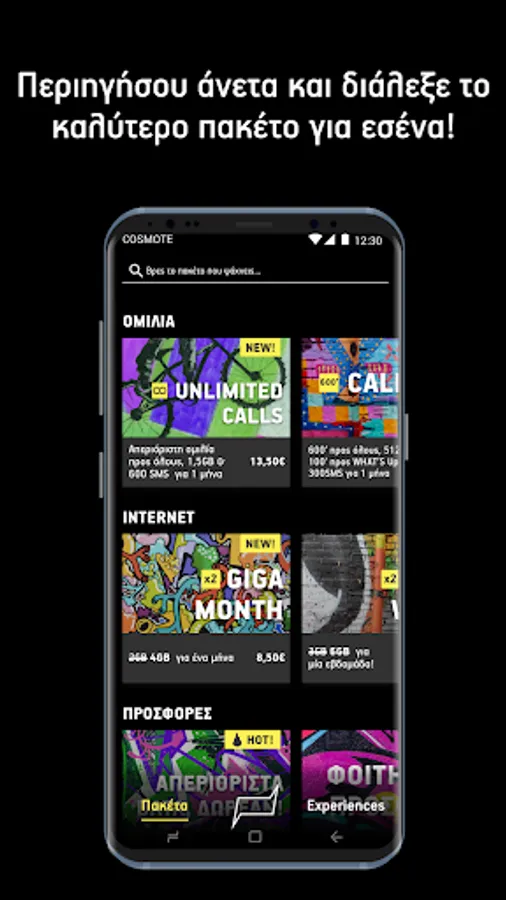 PACKAGES: See all the available packages to get what you need with one tap or by sliding left.