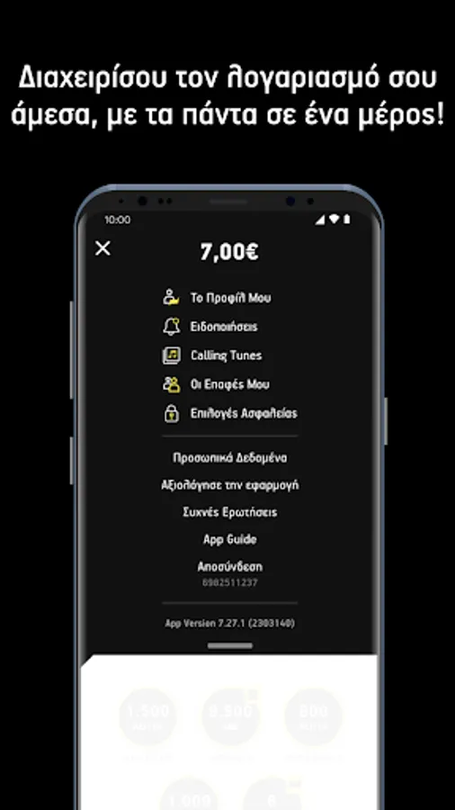 MENU Find all the functions of the app in one place: profiles, connected cards, notifications, calling tunes, What’s Up contacts.