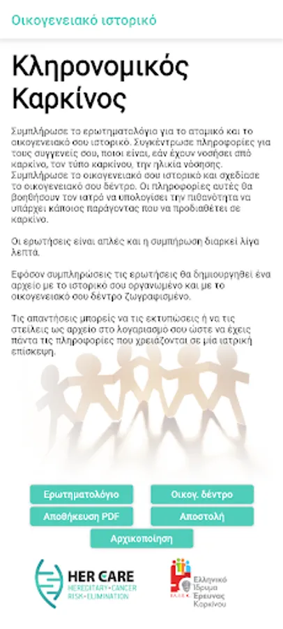 Complete the questionnaire about your personal and family history. Gather information about your relatives, who they are, if they have had cancer, the type of cancer, the age of disease.