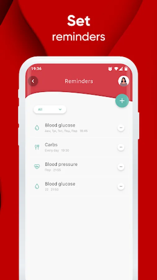 The users can add any reminder to help him manage his disease and overall wellbeing. For example, they can add a daily reminder to measure diabetes or a weekly reminder for exercise every Monday and Sunday.