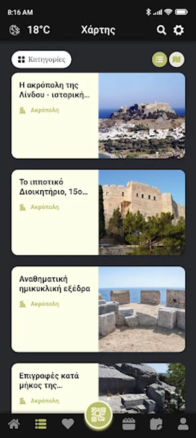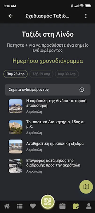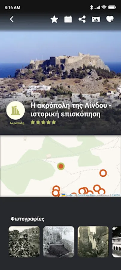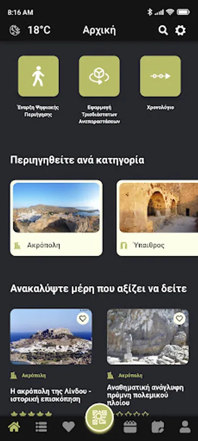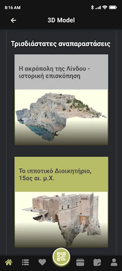 The application consolidates and offers digital content to the visitors of Lindos. It offers a digital tour of the archaeological site, while the user can see 3D representations and reconstructions of selected monuments. In addition, it receives digital information depending on where it is with or without an Internet connection and gains access to a set of information and multimedia material, such as texts and photos. The application integrates a digital map, an interactive timeline, a calendar of events of the EFA Dodecanese, and finally offers a digital travel organizer.