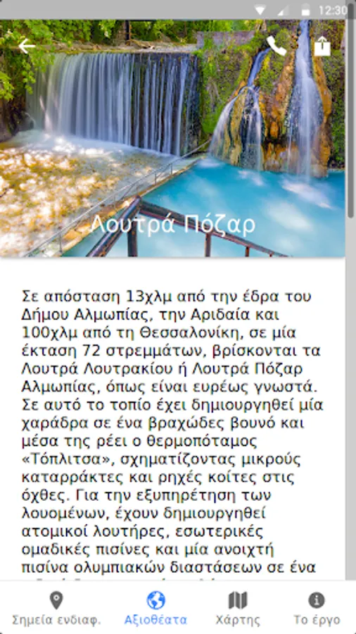 The project aims to promote tourism in the cross-border region of Greece - FYROM. with an emphasis on important water bodies and thermal springs, utilizing modern technology, innovative forms of tourism promotion as well as improving the overall tourism product through training activities. The aim of the project is to organize cities with spa towns, to ensure high quality tourism product, to form a common tourist identity with specialization in each area, promotion and advertising as well as innovative applications. The expected results of the project are the tourist promotion of the areas with thermal springs, the assurance and promotion of the political quality that the partners will follow, the increase of the traffic in the areas and the provision of high quality services of the tourist and non-tourist enterprises of the application area.