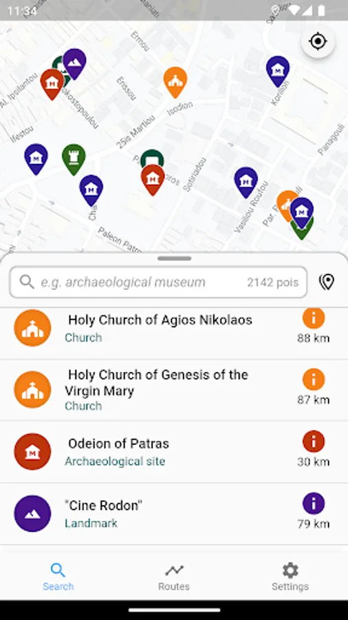 * Search over 3000 points of interest of culture, history, nature and environment.