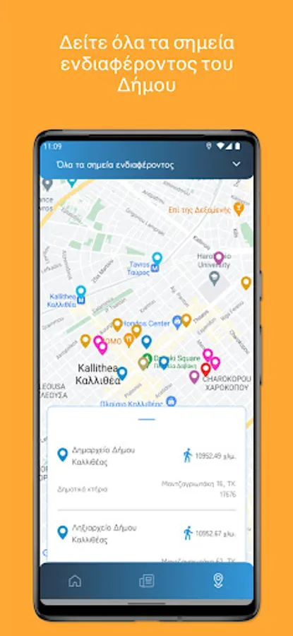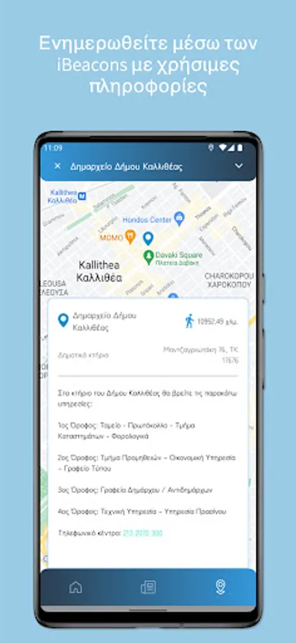 Through a simple to use - but at the same time modern - environment, the official application of the Municipality of Kallithea offers a series of conveniences to the user, while it enables direct and two-way communication between the Municipality and the citizen.
