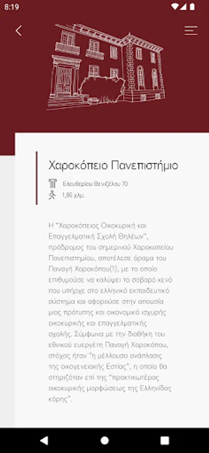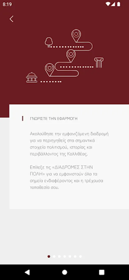 With the installation of the innovative electronic equipment of electronic beacons (iBeacons) and augmented reality technology (Augmented Reality), each traveler can use the application on his device to easily navigate, approach all interesting historical, cultural and environmental points of Kallithea and to be informed about each of them.