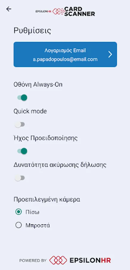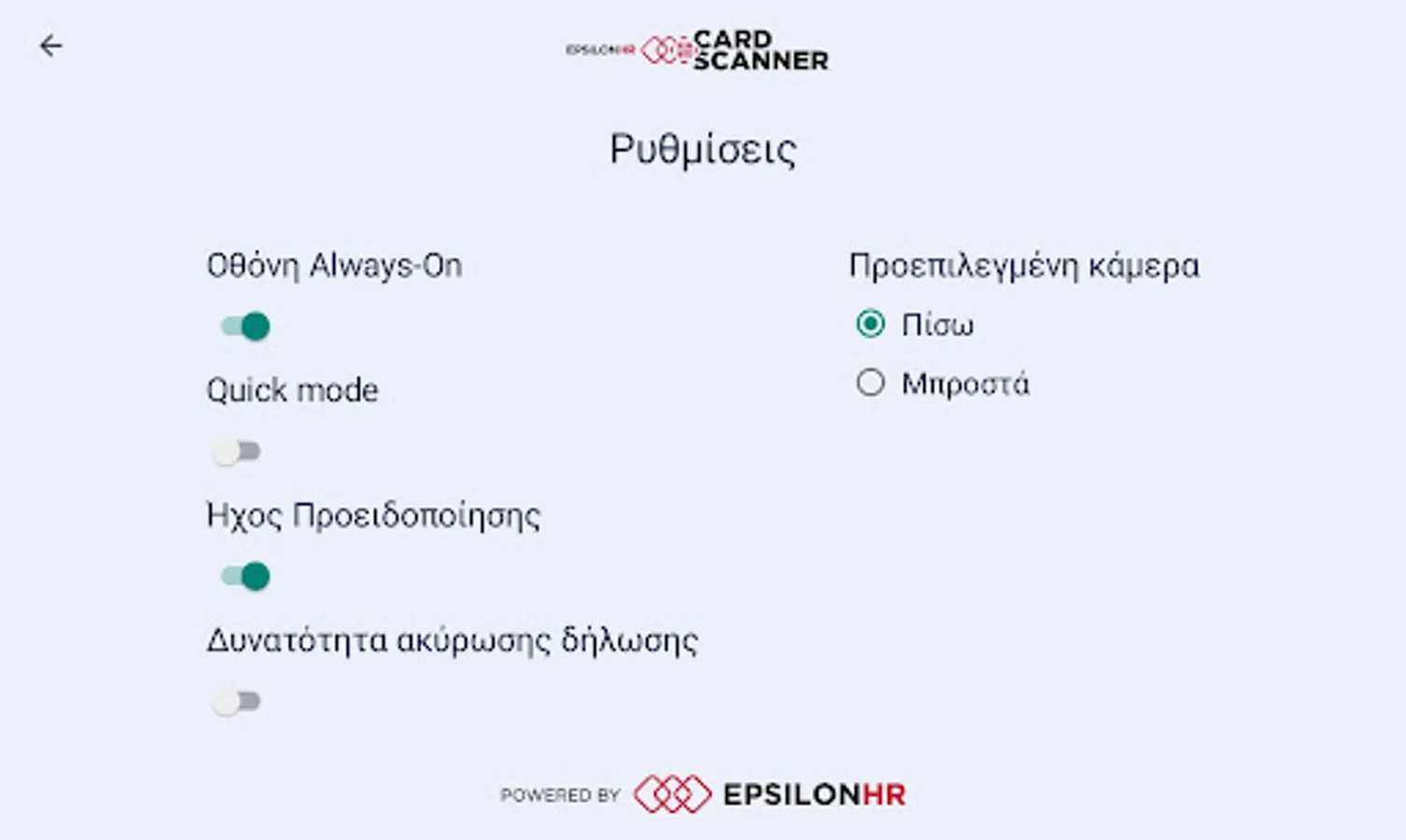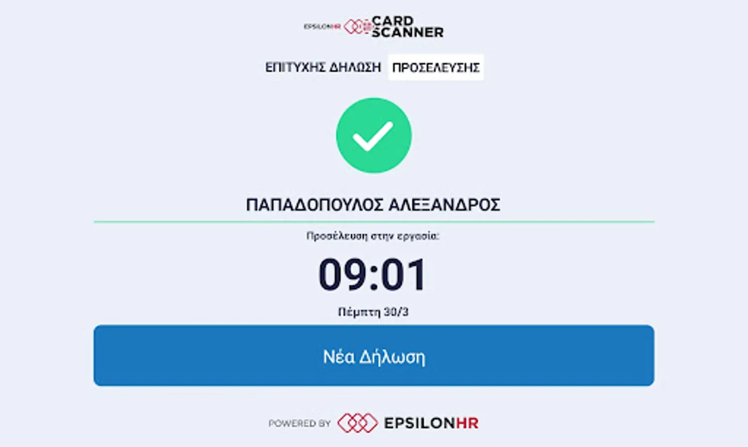 With Epsilon HR's new Card Scanner application combined with the Timekeeping Subsystem of all Epsilon HR payroll applications and with Epsilon Smart Ergani, you have the most complete solution on the market for Digital Time, Digital Work Card, Timekeeping and Payroll your business!