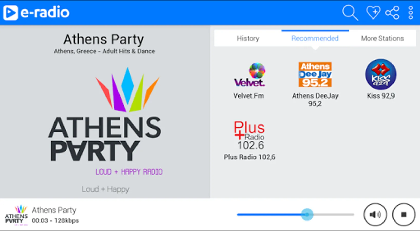 We are constantly trying to make E–Radio as best as it gets, so if you have any comments, suggestions or questions, please do not hesitate to share them with us on support@e-radio.gr :)