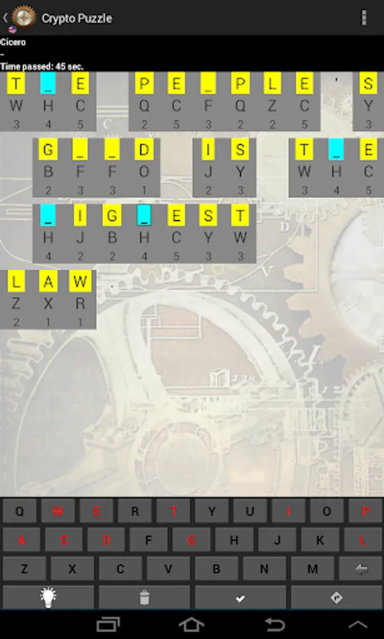Act as a real cryptanalytic – use your intuition, logic but also statistics and tips to decrypt interesting famous quotes and sayings.