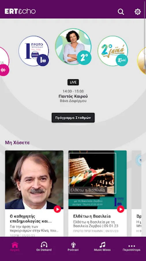 The new platform for all ERT radio stations now available through the ERT εcho app.