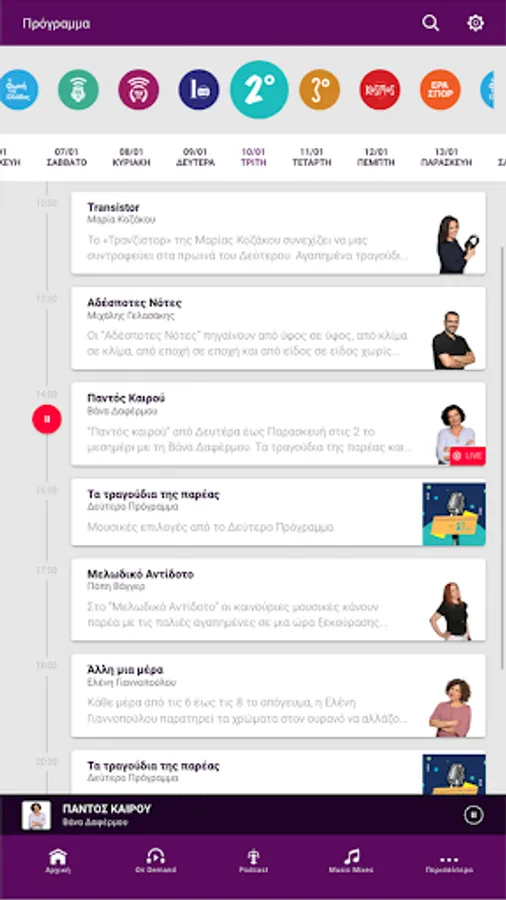 - 24/7 live broadcast of all ERT radio stations