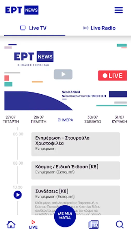 Your ideal choice for continuous information with the reliability of ERTNEWS. All the news 24 hours a day on your mobile with immediacy, completeness and validity. ERTNEWS journalists, correspondents around the world and regional stations throughout Greece will bring you the events, providing all the necessary information you need. The live players of ERTNEWS TV and the First Program (radio) are integrated into the application, while rich audiovisual content will be available to you.