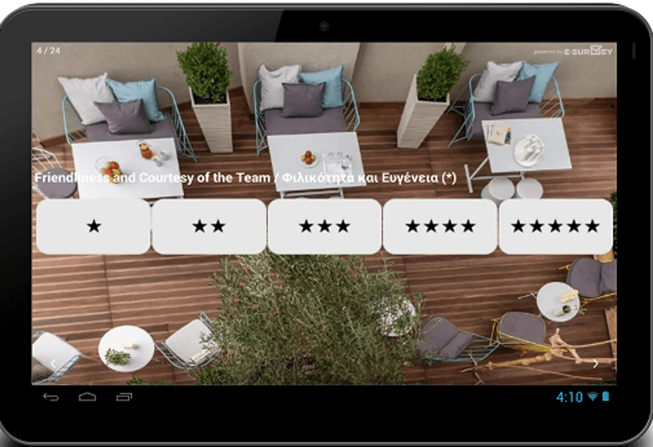 eSurvey is a revolutionary platform that allows you to do surveys using mobile devices (tablets). You use the tablet as POS and let your customers voluntarily answer the questionaire or have a person with the tablet in hand approach customers.