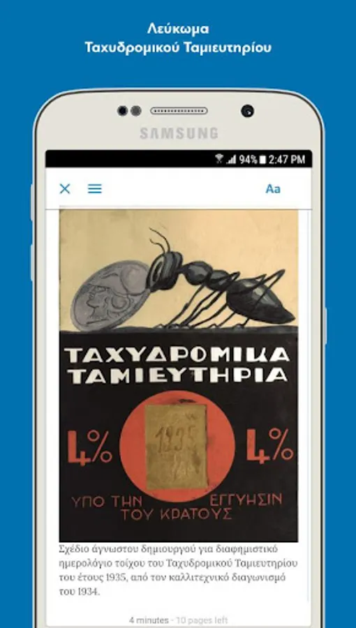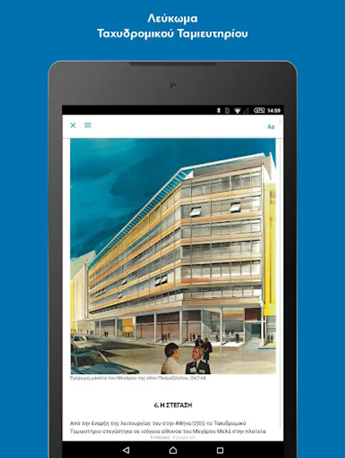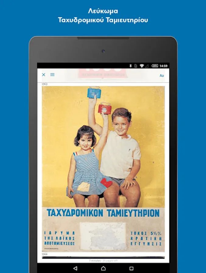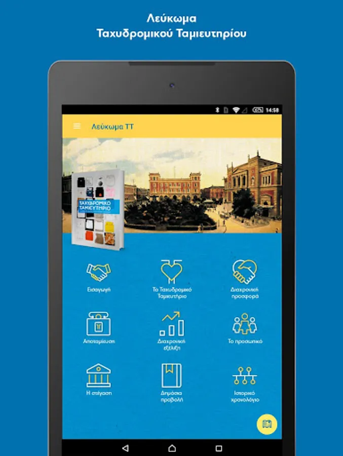 Experience the history of Postbank via interactive environment that provides the application "TT Album". The trip Postbank time emerges summarized into eight sections with text and photos of selected exhibits from the main stations.