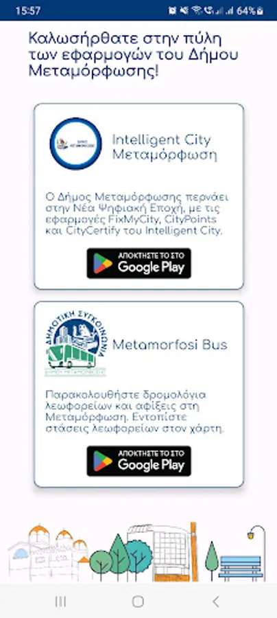 Application that gives access and information about the available applications of the Municipality of Metamorfosi.