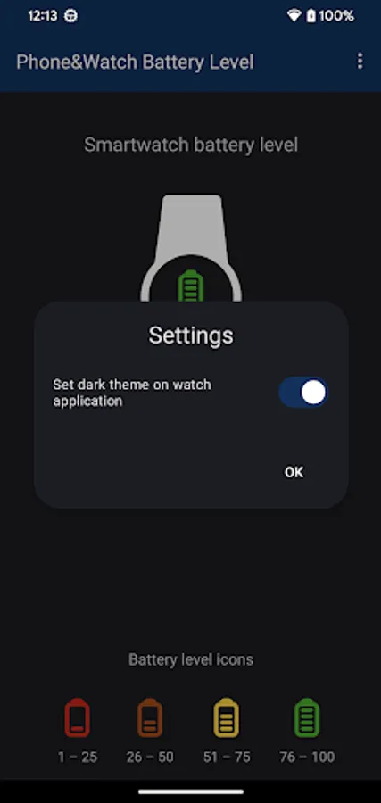 Quickly check the battery level of your phone from your Android Wear Smartwatch and vice versa.