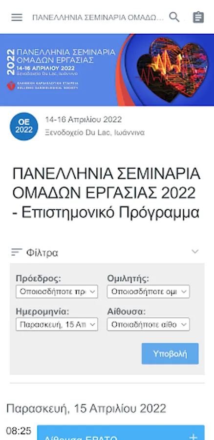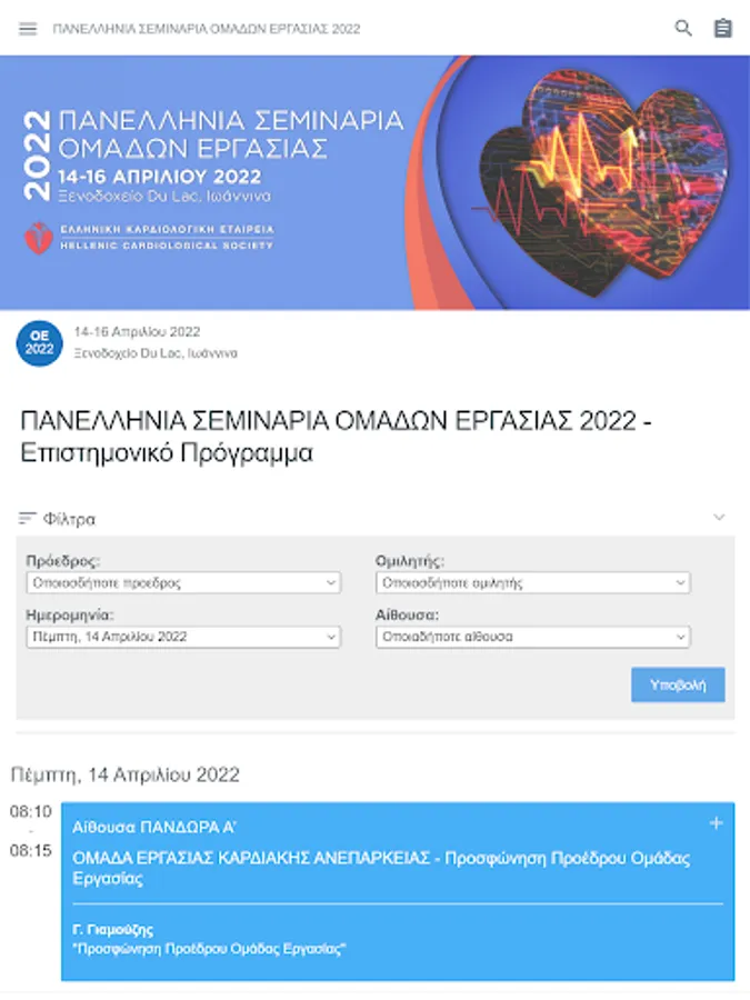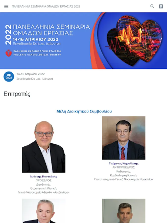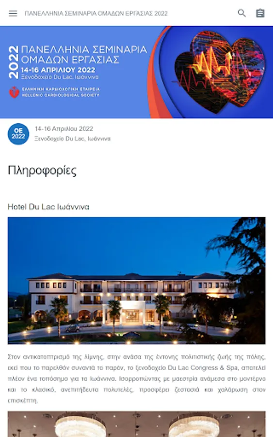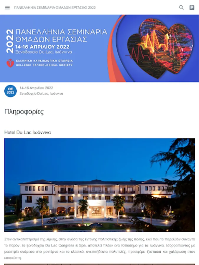 Panhellenic Working Group Seminars 2022. Hotel Du Lac, Ioannina. 14 - 16 April 2022