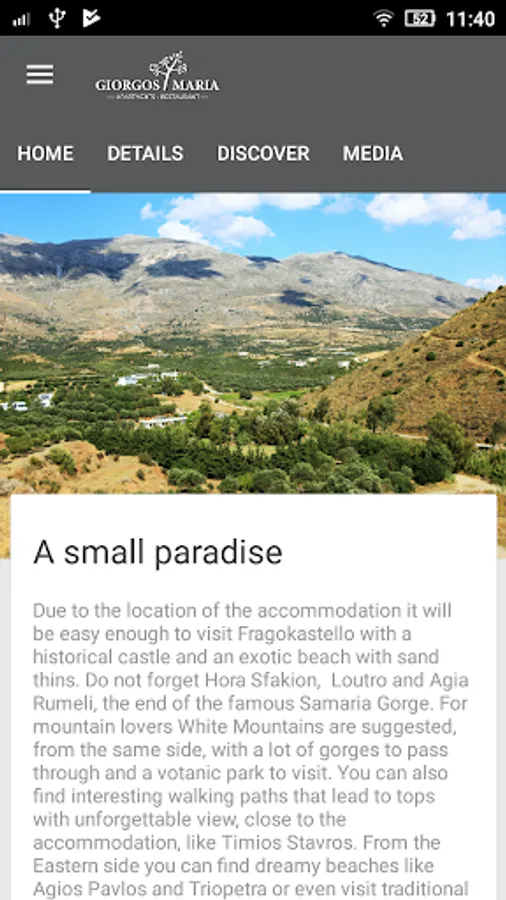 Giorgos and Maria’s accommodation is based in the centre of Crete’s southern edge. That makes it easy to reach some of the most popular and attractive places of the island. Damnoni beach and other smaller or bigger beaches  though are just a few hundred meters away, in all of which you can enjoy the crystal clear waters of the Libyan Sea.